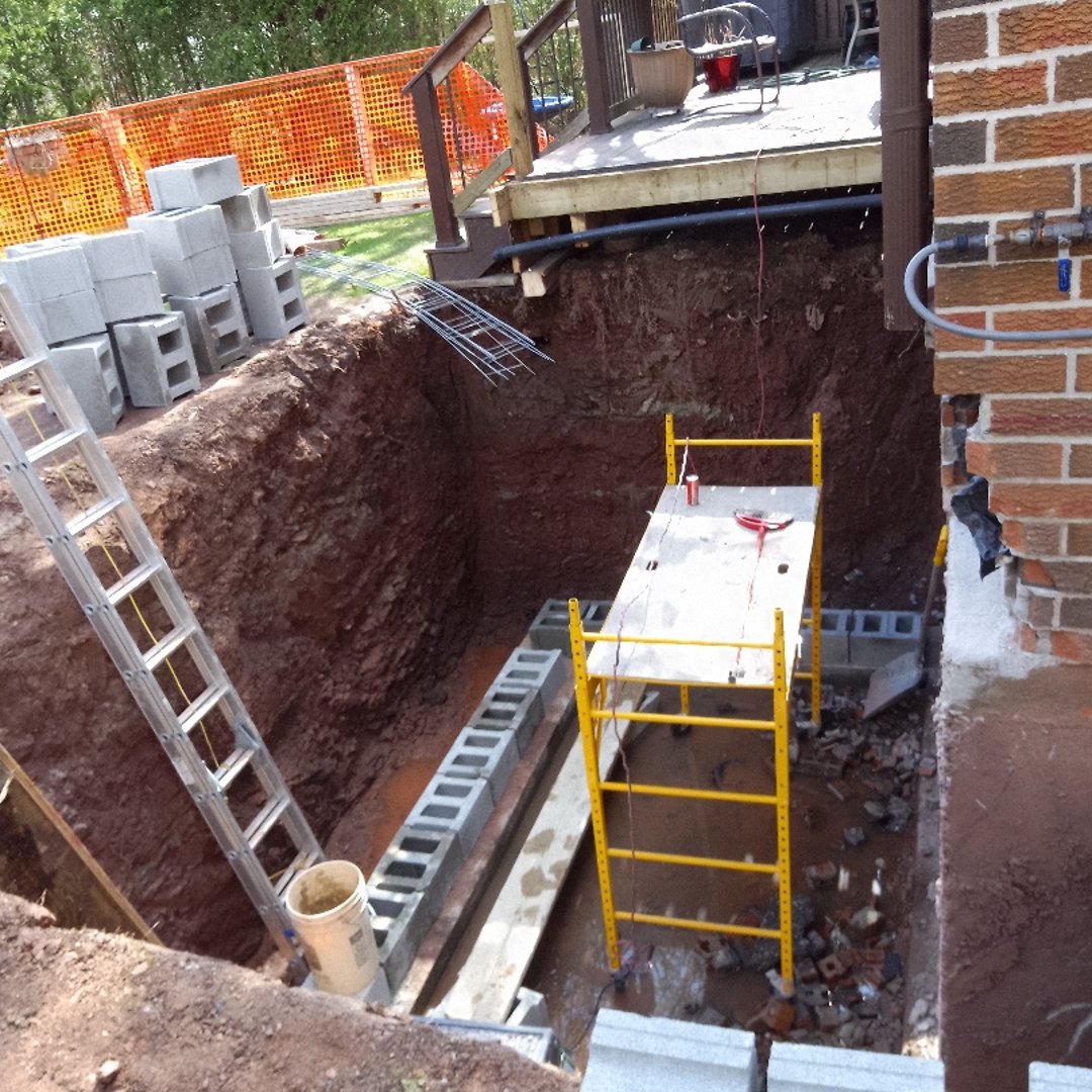 Sometimes you need a foundation specialist for the structural work, then a mason for the cosmetic finish. Example: foundation gets underpinned and stabilized (engineer), then we come in to repoint the blocks and repair parging (mason).